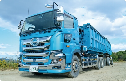 私はフルトレーラで産業廃棄物の収集や砕石製品などの運搬をしています。