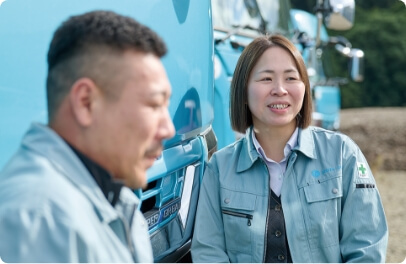 廃棄物の搬入、砕石製品の搬出でお取引先様と最初に接する窓口である重要性を鑑み、