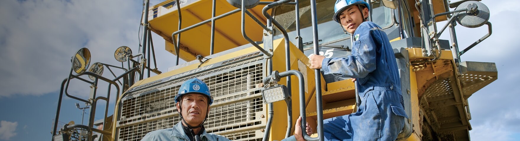 私はプラントの修理や点検などのほか、重機に乗ってプラントへ砕石の投入作業をしています。